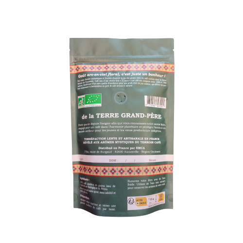 100% café arabica en grains issu de l’agriculture biologique du Pérou.