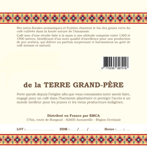 100% café arabica en grains issu de l’agriculture biologique du Pérou.